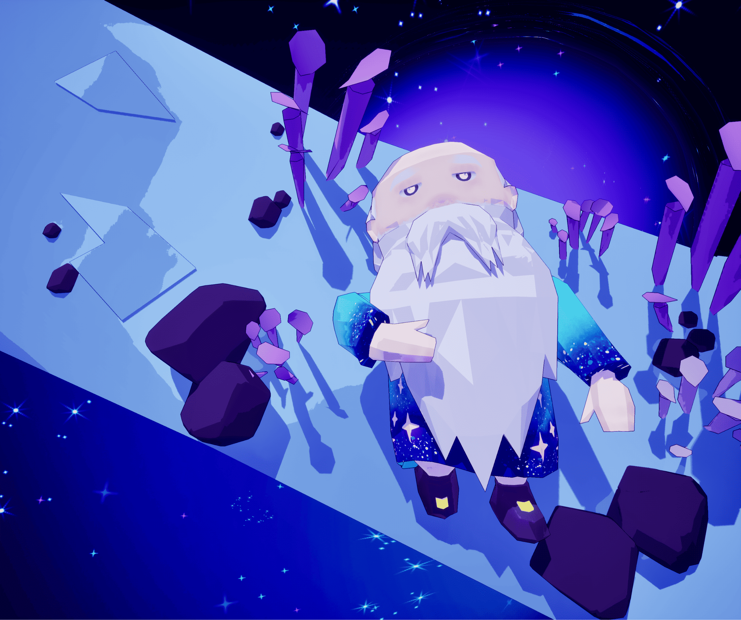 A 3D puzzle game with a 3rd person view, where you are a grandfather collecting a necklace for your granddaughter from fallen stars in outer space.